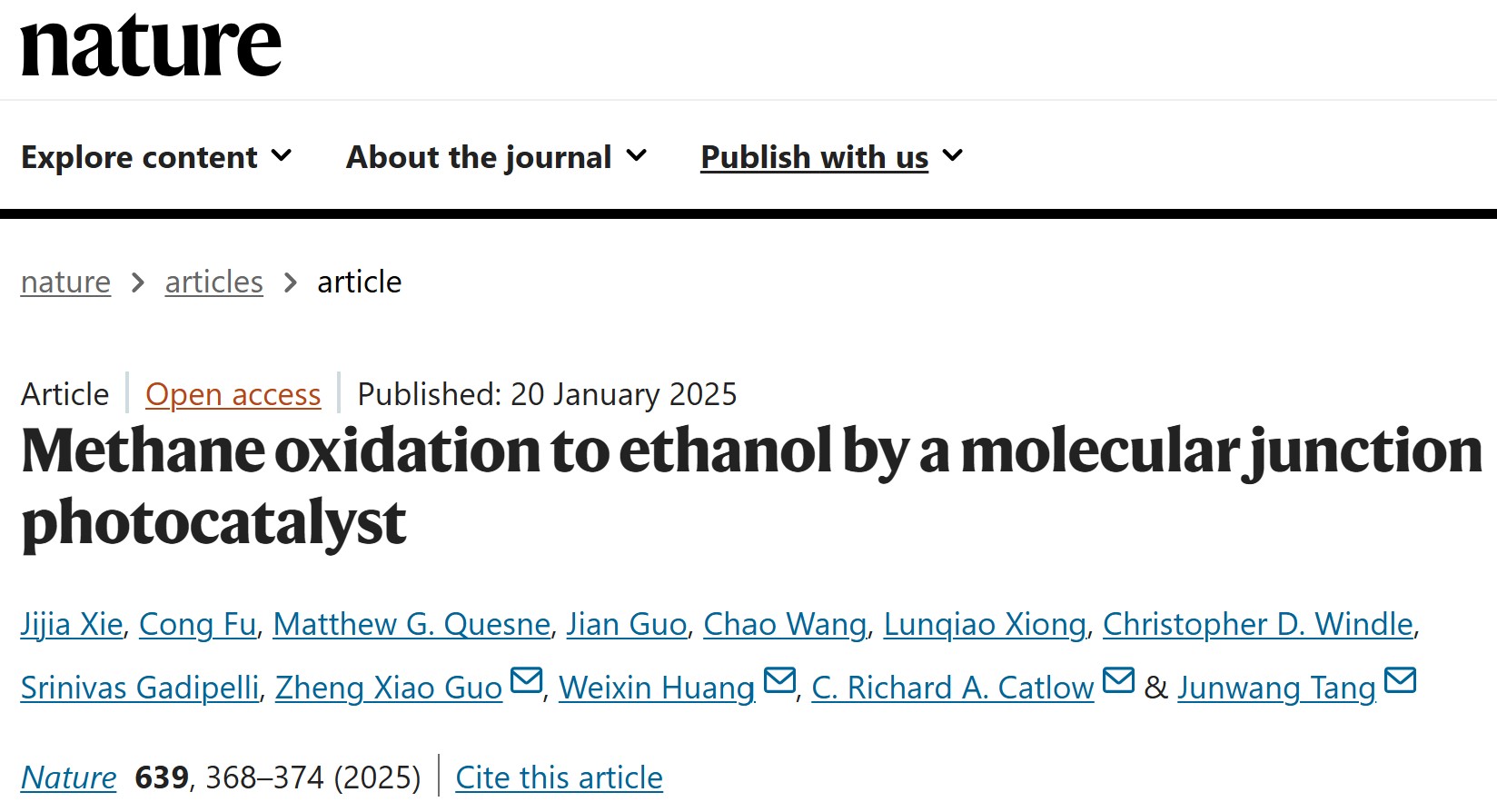 This achievement is the result of nearly a decade of highly efficient collaboration among a multinational team comprising five universities from China and the UK, highlighting the essential role of global scientific cooperation in addressing critical energy challenges. The related research, entitled "Methane oxidation to ethanol by a molecular junction photocatalyst," was published online in Nature on January 20 (Nature 2025, 639, 368–374).