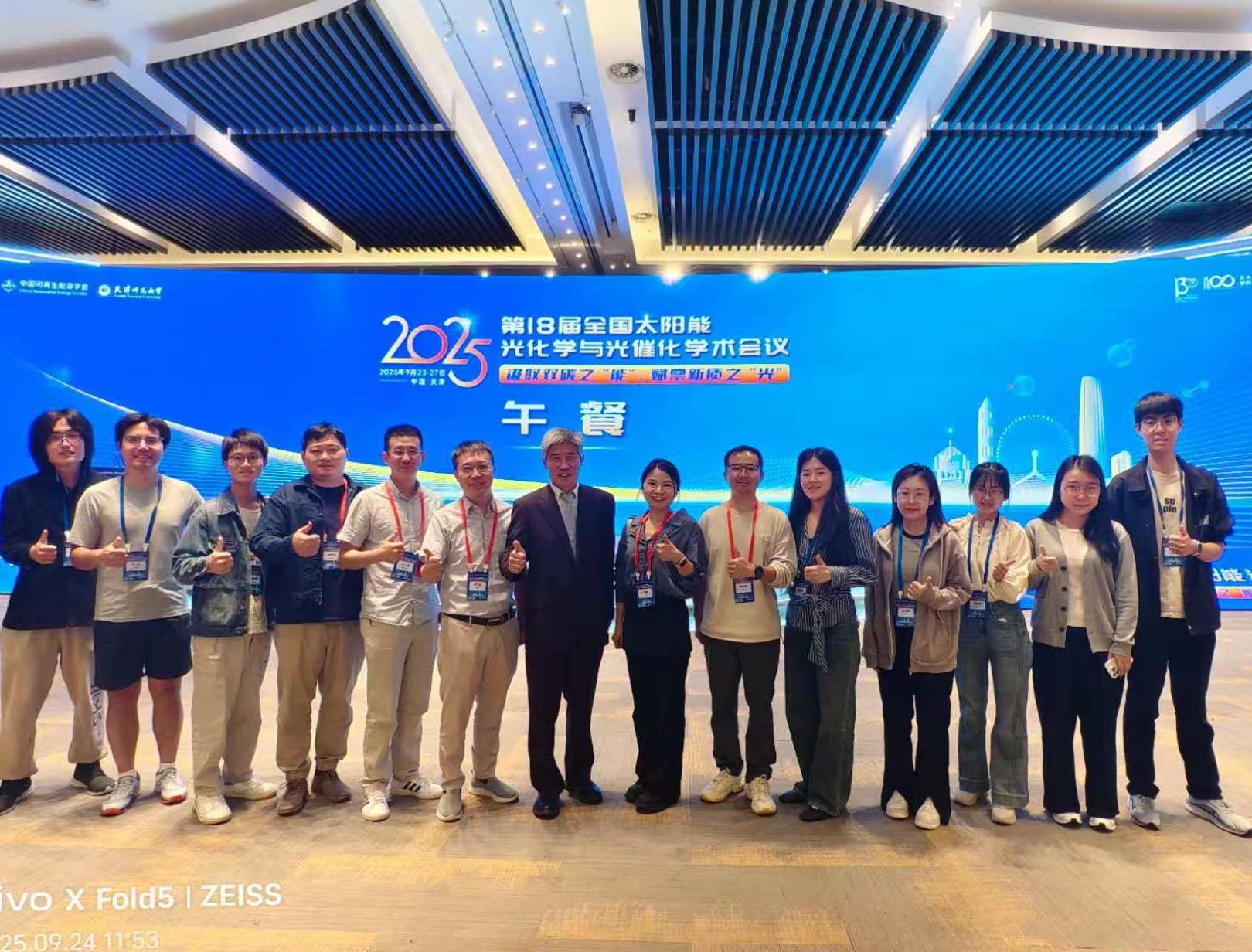 Our group achieved fruitful results at the 18th National Conference on Solar Photochemistry and Photocatalysis held in Tianjin. Professor Tang, Junwang present a Plenary Lecture titled "From Photocatalysis to Photon-Phonon Co-Driven Catalysis," which garnered significant attention from attending experts. Dr. Xiong, Lunqiao presented an oral presentation in a parallel session entitled "Application of Single-Atom/Atom Cluster Photocatalysts in Glycerol Oxidation." Furthermore, the academic poster presented by Zheng, Yaxuan, received the Best Poster Award.